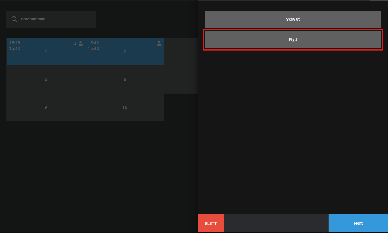 - Klikk på Bord øverst til venstre og velger bordnummeret som skal flyttes.