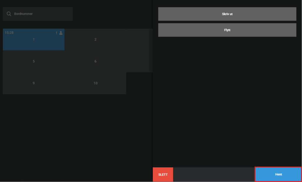 - Velg Flytt og velg bordnummeret salget skal flyttes til.