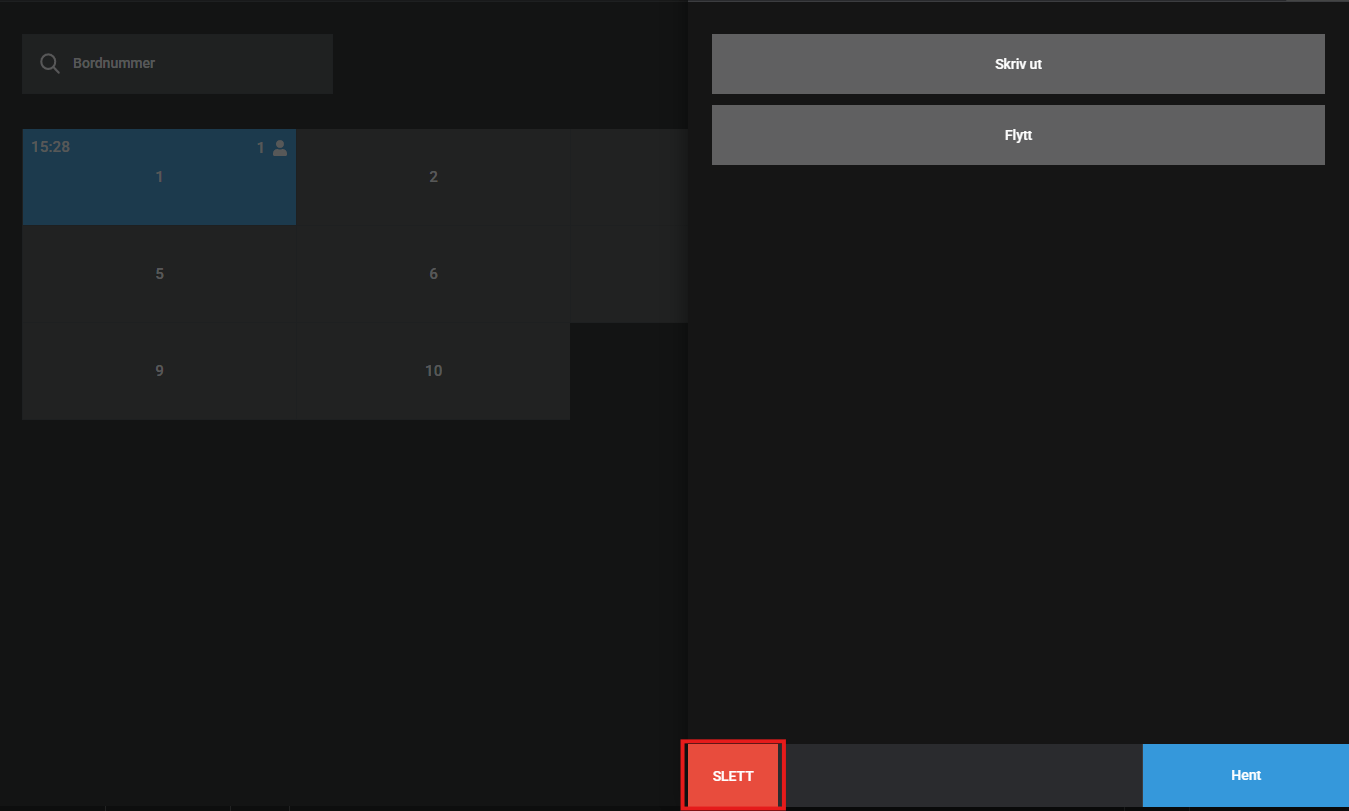 - Velg bordet du ønsker å slette varer fra