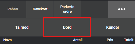 For å parkere et salg på bord, slår du inn salget som vanlig men i stedet for å gå til betaling, velger du Bord.