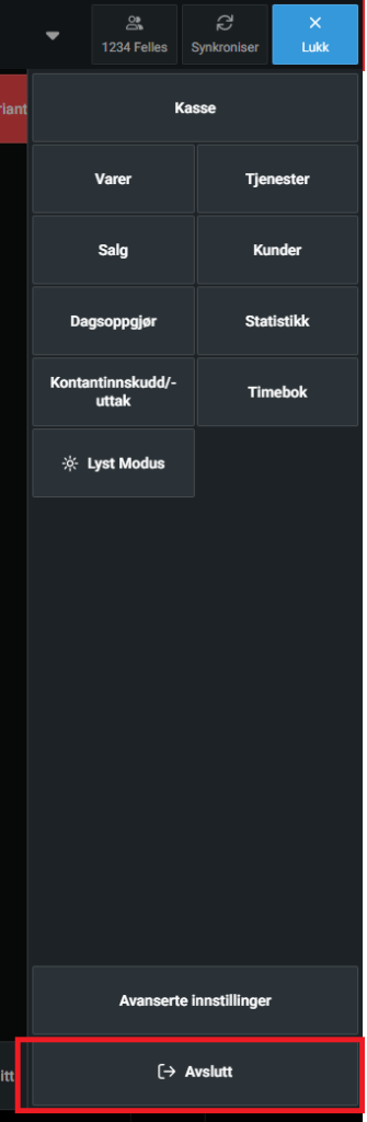Trykk på menyen i kassen.