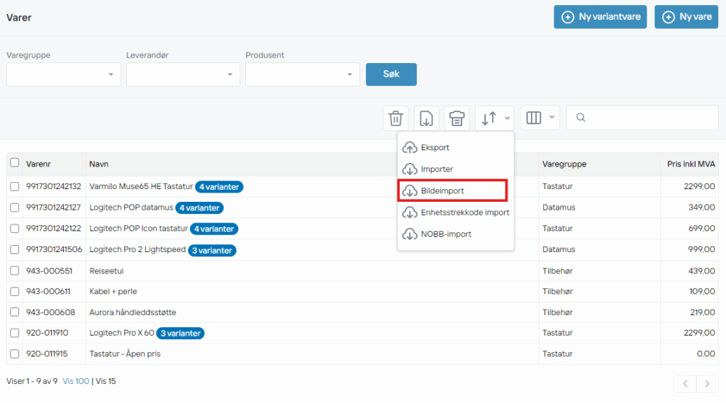 Du kan enkelt legge til bilder til varene dine med en bildeimport.