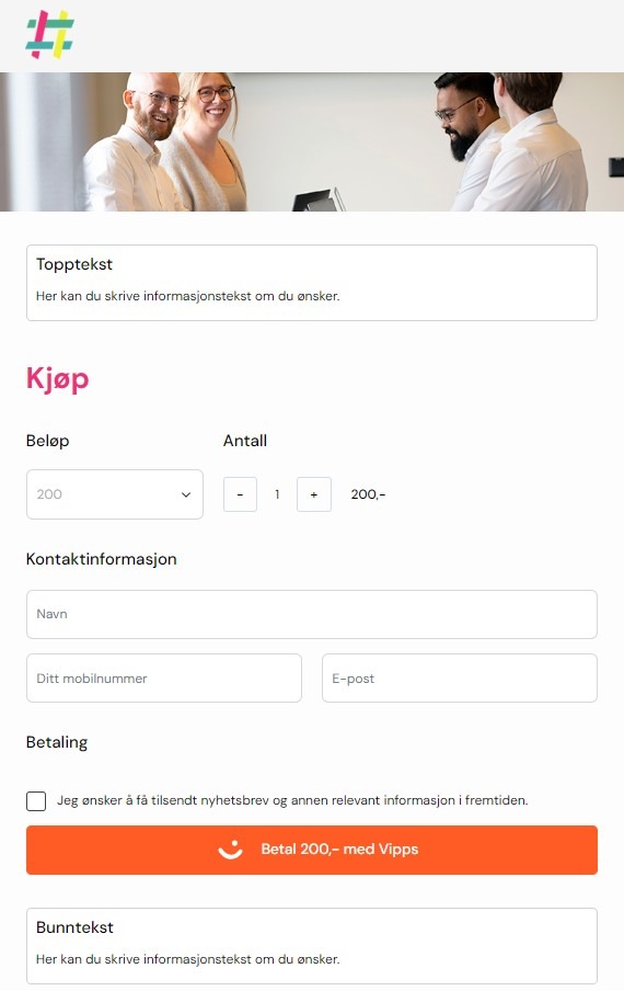 Se eksempel fra vårt oppsett under for å se hvordan Informasjonsbokser, farger og banner dukker opp.