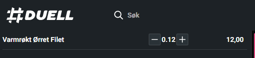 Kassen støtter kun to desimaler, så vekten kan bli avrundet opp eller ned avhengig av strekkoden. I eksemplet over har varen «Varmrøkt Ørret filet» blitt rundet opp fra 116 gram til 120 gram.